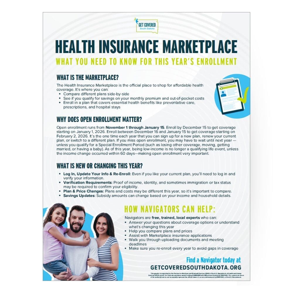 Download and share this flyer with your community. It outlines how Get Covered South Dakota can help anyone find affordable health insurance, for free. Plus, the flyer has a QR code that enables consumers to scan the code with their phone. After scanning, they’ll be prompted to schedule a free appointment with a Navigator.
